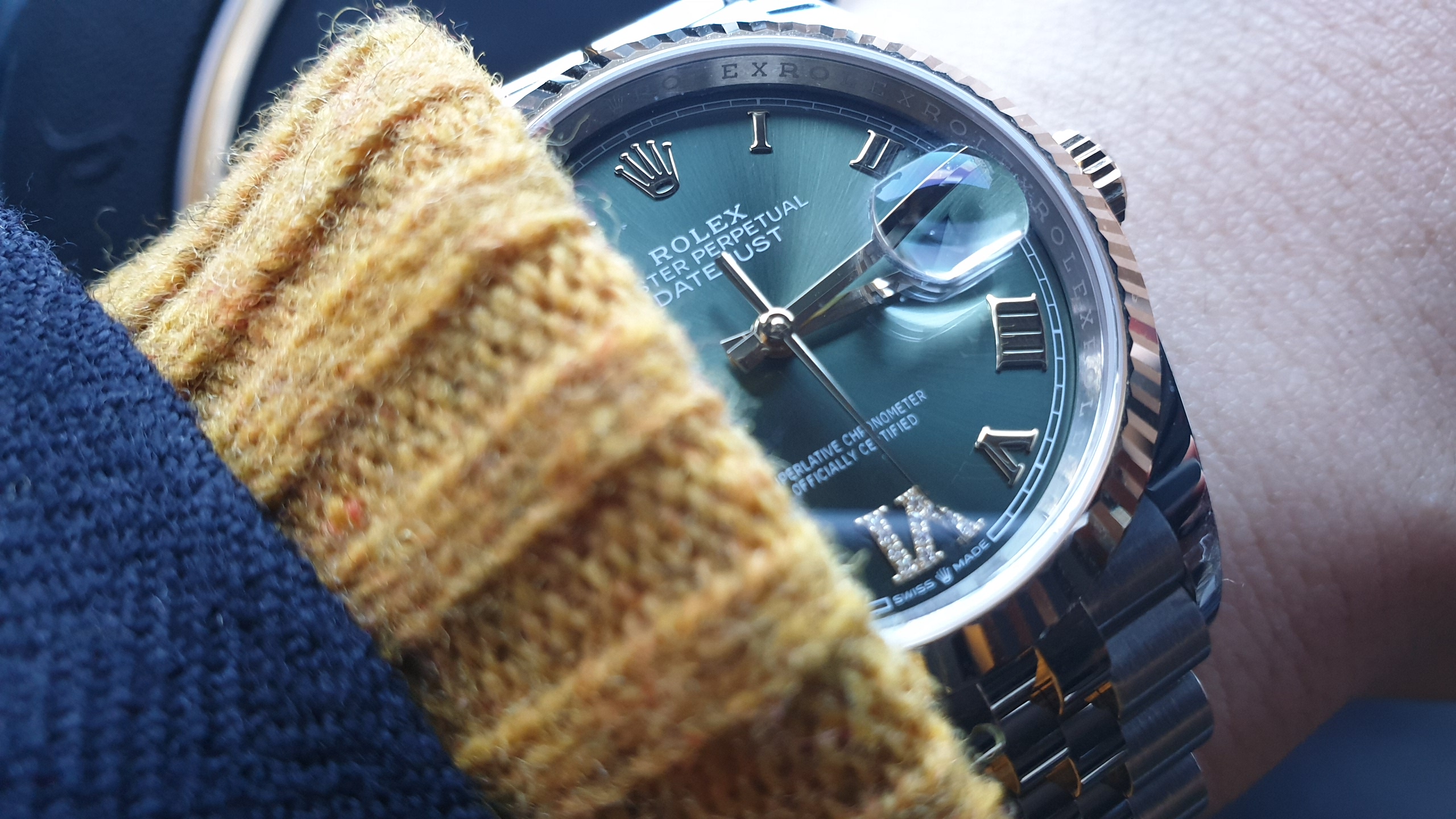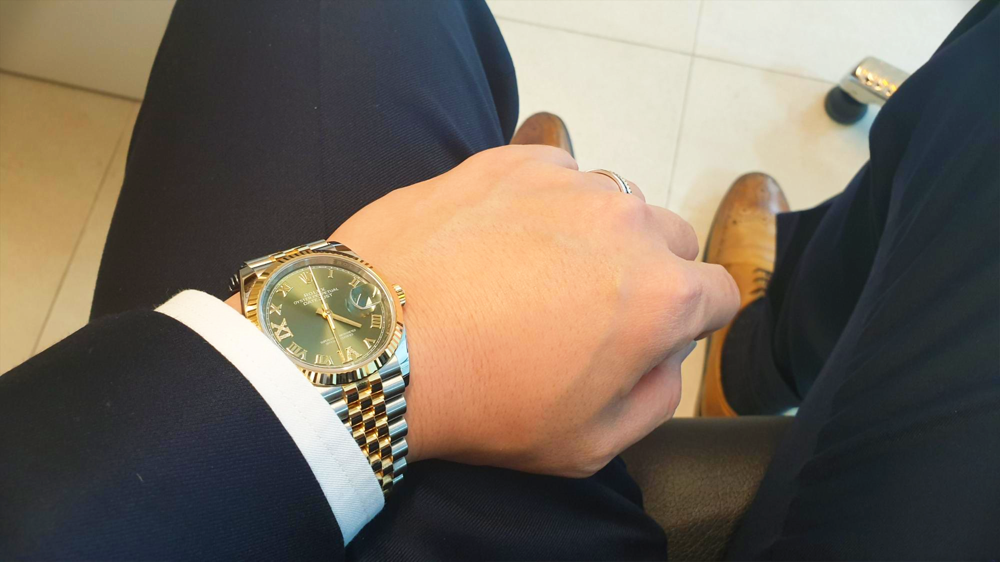 데이트저스트는 롤렉스의 드레스 워치이지만 캐주얼한 복장에도 잘 어울리는 게 매력입니다.