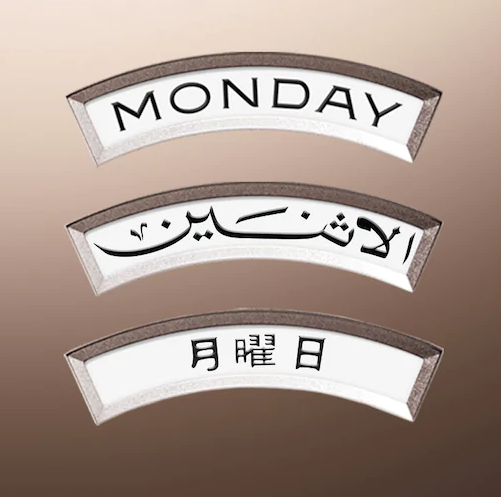 데이데이트의 독특한 기능인 요일 표시 기능에서 요일을 표시하는 언어는 영어뿐만 아니라