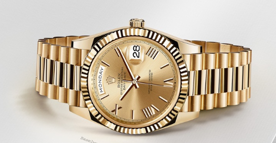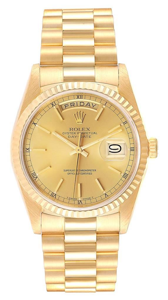 롤렉스 시계의 드레스 워치 모델 중, 고가의 급에는 '데이데이트(Day-Date)' 모델이 있습니다.